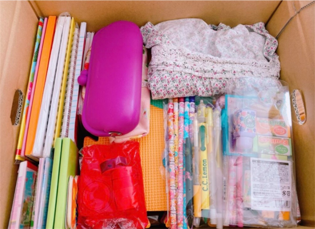 私は今まで使っていた服や水筒、文房具などを用意しました。結構な汚れがあるものはさすがに捨てましたが、綺麗めなものは寄付しました。